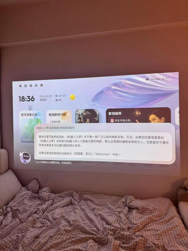 当贝Smart1在智能功能上,它搭载了当贝OS4.1系统,支持自动对焦、全向无感自动梯形校正、智能避障和幕布自适应等一系列实用功能。它还全新升级了当贝语音助手2.0,接入DeepSeek后,实现了智能交互的质的飞跃,支持自然语言对话,不管是查询影片、搜索资料,还是控制播放进度,只需动动嘴就能轻松完成。