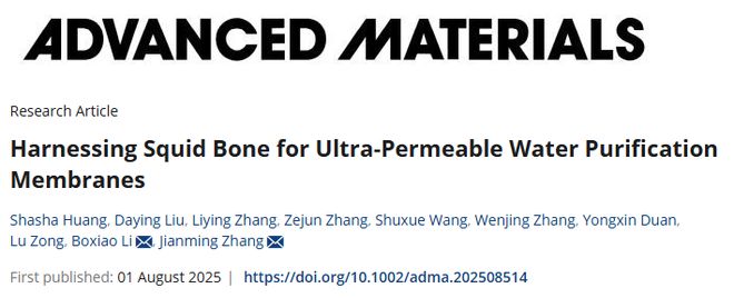 青岛科技大学张建明教授AM:鱿鱼骨变身高性能过滤膜