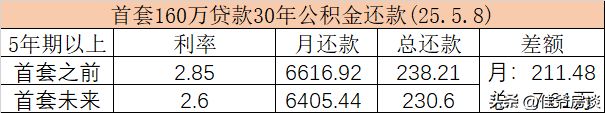 第二,公积金正式下调利率0.25个百分点,如果按公积金首房首贷30年账期贷款160万去算,较之前每个月少还200多块钱,总额少7万多块钱。这不等于买房优惠了7万多么~