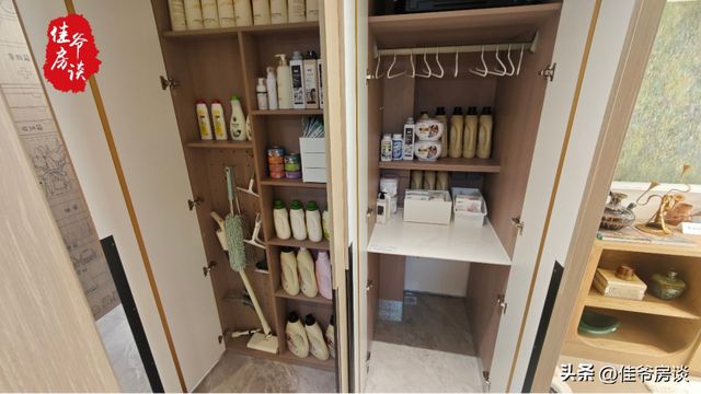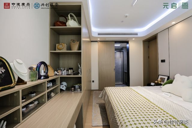 以元启项目88平米三居为例,项目交付标准不光包含家政间、餐边柜等收纳空间,甚至于主卧室将收纳空间最大化的通顶定制衣柜也是交付标准,是市面上比较少见的。这就基本上做到拎包入住了。