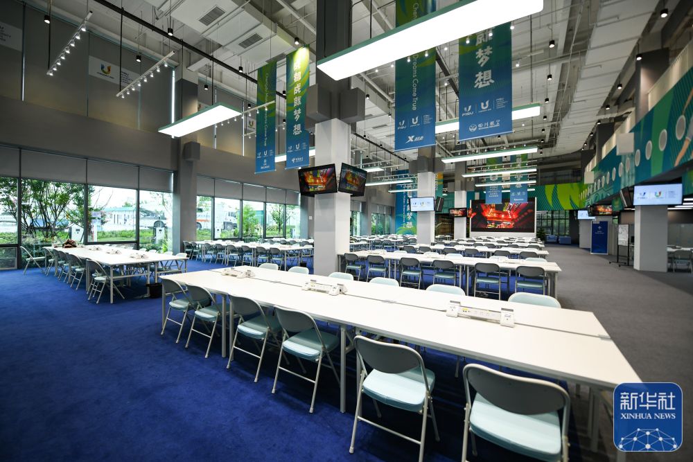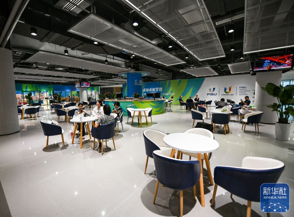 这是7月13日拍摄的成都大运会主媒体中心的会客厅。新华社记者 王曦 摄