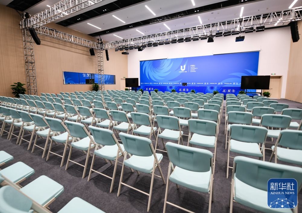 这是7月13日拍摄的成都大运会主媒体中心新闻发布厅。新华社记者 王曦 摄